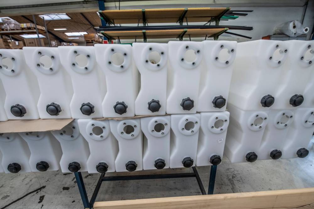 Wind turbines uses a lot of small and big tanks for holding coolant and oil. The tanks are also used to catch oil when draining parts for service or in case of non-control discharge of liquids like oil and cooling liquids. For