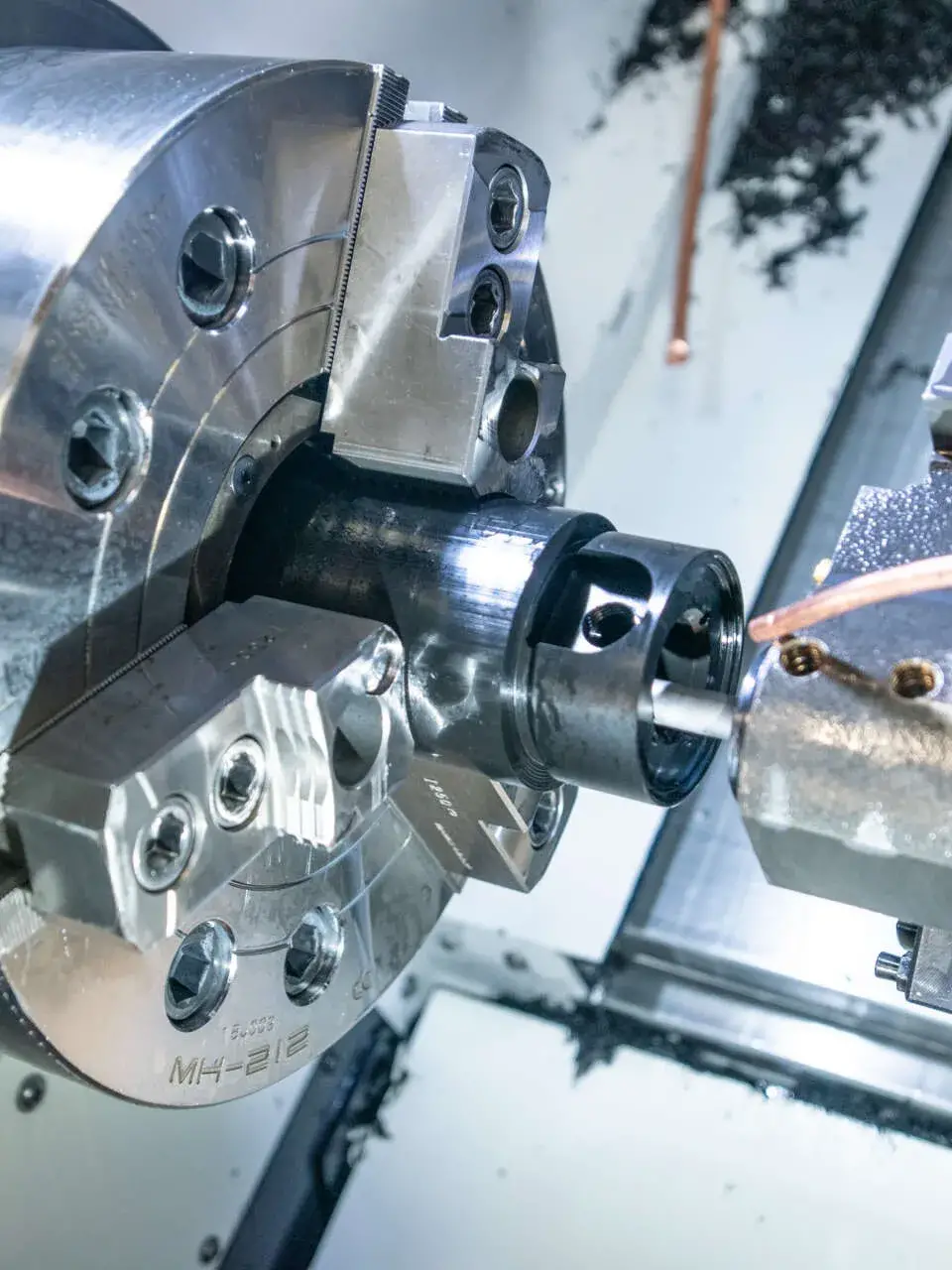 De 4 aksede kan køre Ø 10-100 mm i diameter og three-jaw chuck op til Ø400 mm.