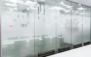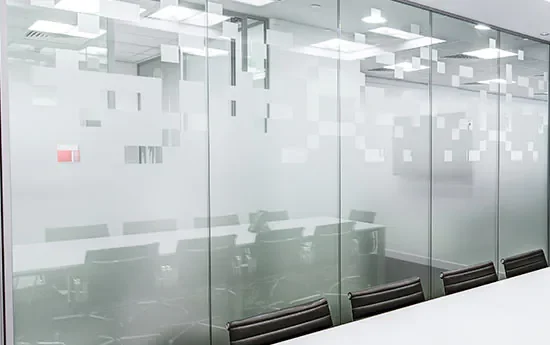 Skabe visuel identitet – fx virksomhedslogo eller mønster på glasflader og rumafskærmning.