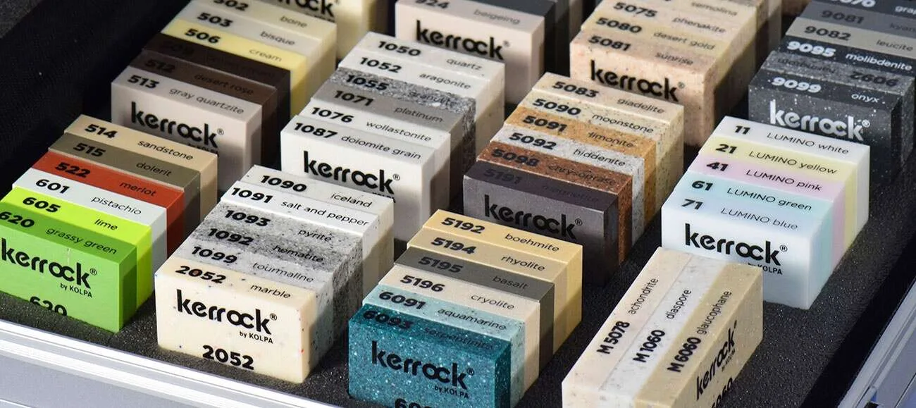 Kerrock® føres i mange farver og fælles for dem alle er den nemme bearbejdning af materialet samt evnen til at bruge det såvel inden- som udendørs.