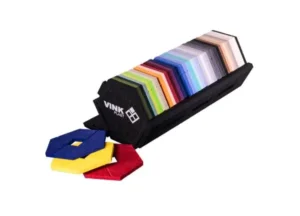 PET filtpladerne leveres i over 48 farver, der konstant tilpasses/optimeres efter behov fra markedet. Kontakt Vink for seneste nyt om farvemuligheder eller se på shop.vink.dk.