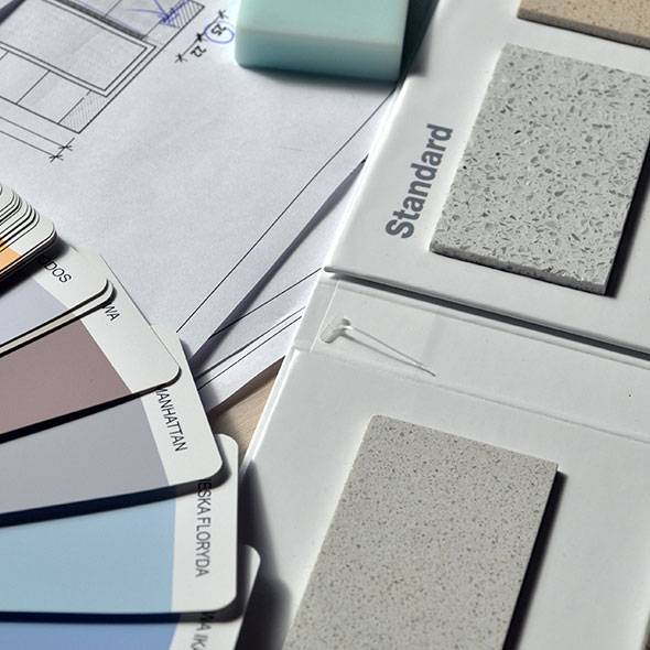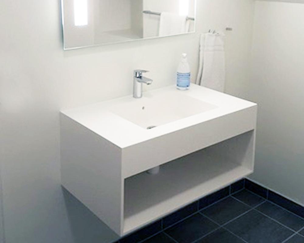 Det hele ligger i detaljen, og med Kerrock passer tingene sammen. Du kan nemlig lave skabe, og andre møbler i samme kerrockplade, som du har som bordplade, vask eller badekar. Mulighederne for flotte overgange mellem inventaret, og elementer i ens farver giver ro. Afstandsstykker og anden inddækning laves helt elegant og kan tilpasses efter behov.