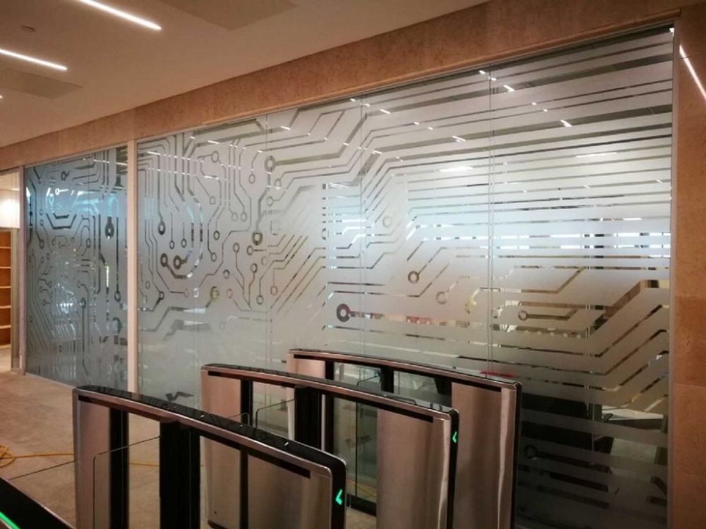 Etch kan monteres på alle glatte og plane overflader som glas og plast, hvor det giver en lys eller visuel afdæmpet effekt.