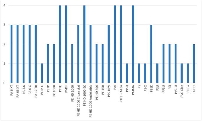 Generelt bør man aldrig vælge materiale baseret på graferne alene, men kontakte Vink Plast for at få en vurdering af den konkrete anvendelse i det konkrete miljø.