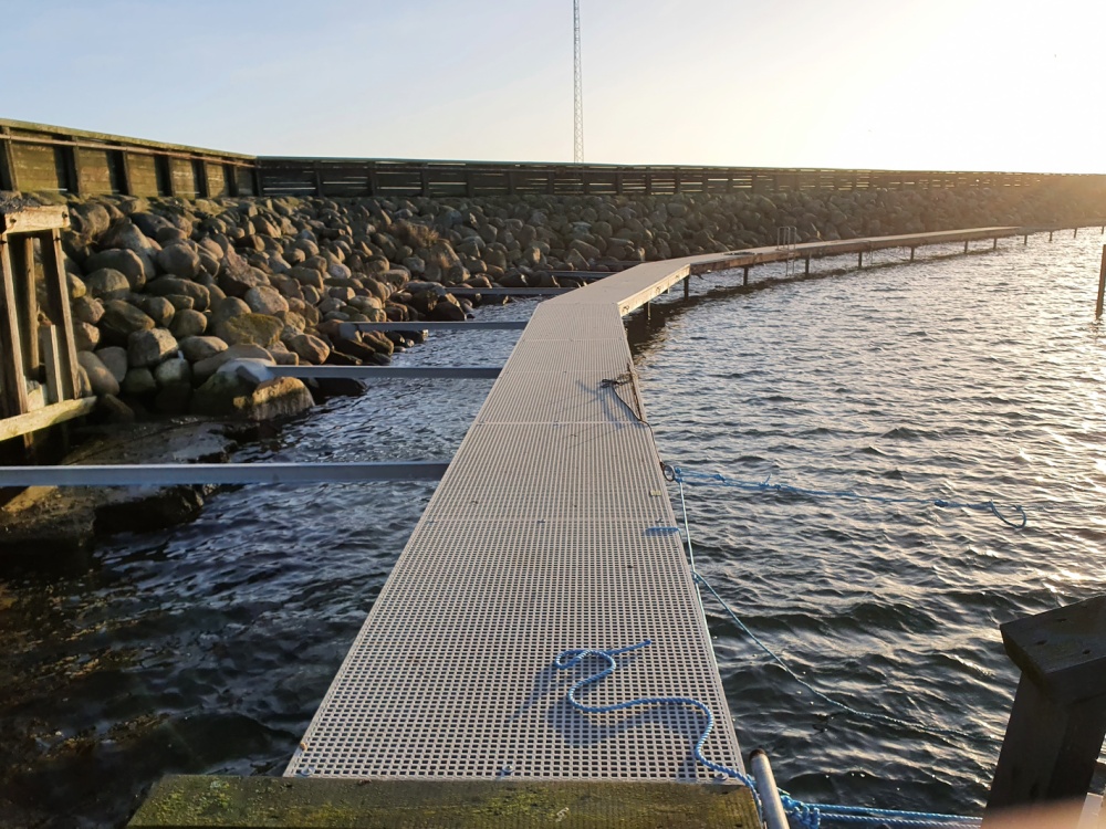Havnen i Strandby har i seks måneder haft glæde af en forlængelse til deres almindelige bådebro i træ. Forlængelsen på 40 meter er en serie af glasfiberriste fra Vink Plast, og havnechefen er yderst tilfreds.